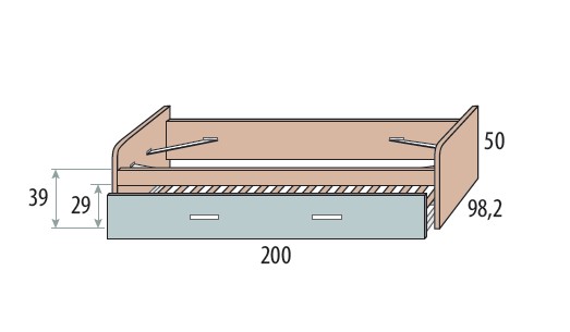 Cama superior: 90 ó 105 x 190 cm de largo. Somier de arrastre inferior: 90 x 190 cm de largo.