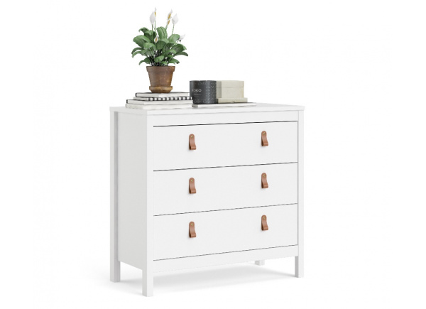 La cómoda LILLA dispone de tres prácticos cajones amplios + 2 pequeños arriba. Con dos modelos de tirador incluidos, para ponerle el que más te guste.