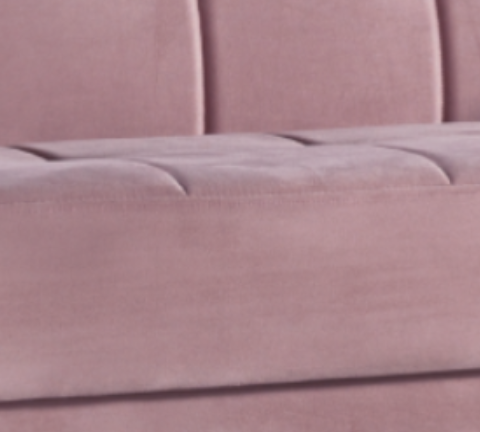 Sofá cama colchón de muelles apertura clic-clac, en color rosa.