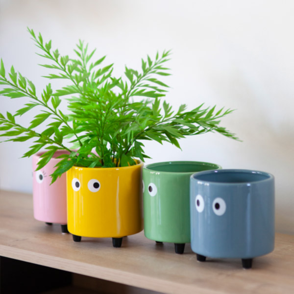 ¿Te imaginas un macetero con ojos, sin boca y con dos patas? Pues en Tuco, lo tenemos, y en cinco colores distintos.