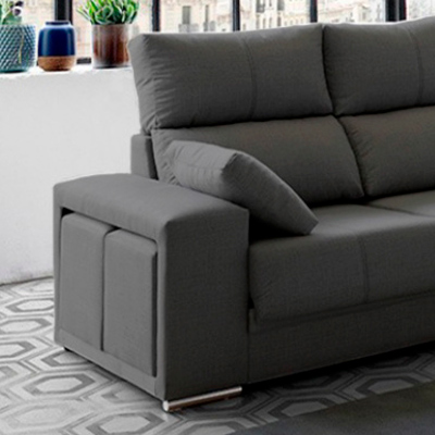 ¿Y de dónde sacamos tantas plazas? Pues porque la chaise longue LEEDS tiene 4 pufs incorporados 2 en brazo y 2 en chaise longue. Y además el brazo es divisible, de modo que otro asiento más que sacas.