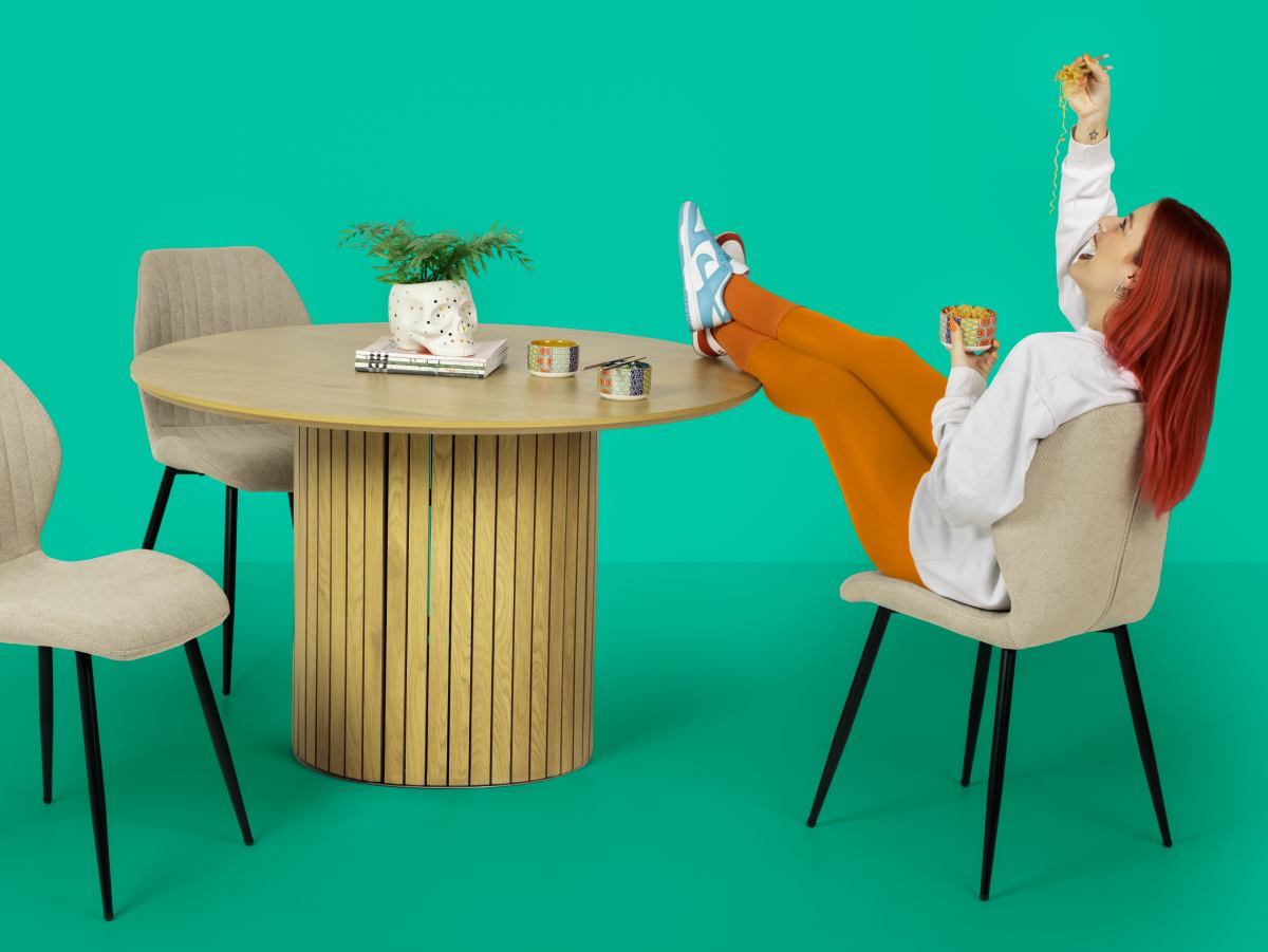 La mesa de comedor redonda REEF es perfecta para cualquier salón. ¡Atrévete a adoptar el estilo escandinavo y siente la vibra natural de esta mesa de comedor!