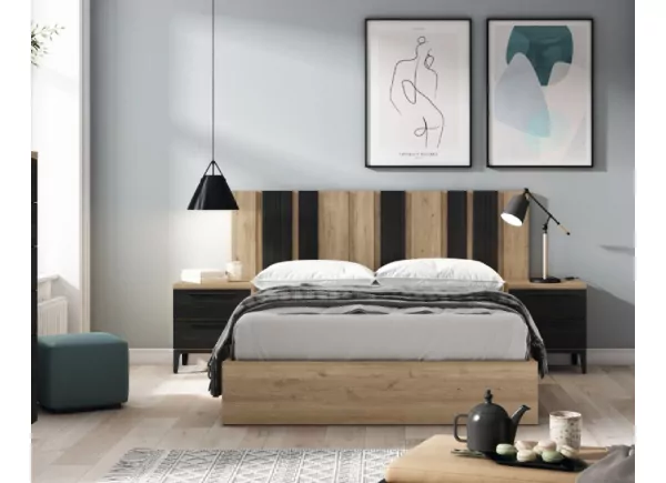 Cabeceira para estrado e colchão de 135 ou 150 cm (não incluídos), com acabamento nas cores Naturale, Naturale combinado com Bocamina ou Shamal combinado com Cinza Tormenta.