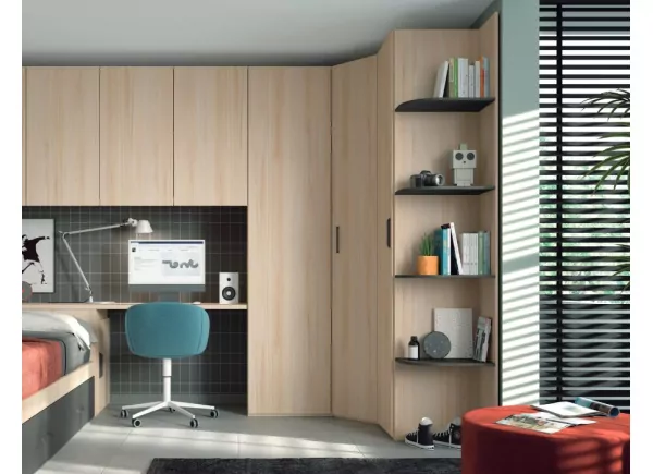 - Compacto com duas camas e gavetas ou uma terceira cama auxiliar.