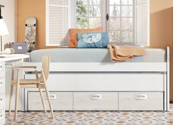 Cama superior de 90 ou 105 com cama oculta e 3 gavetas CLEO