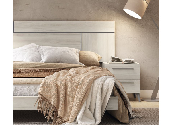 Dormitorio de matrimonio para somier y colchón de 135 ó 150 cm no incluidos. Formado por un cabecero y 2 mesitas.