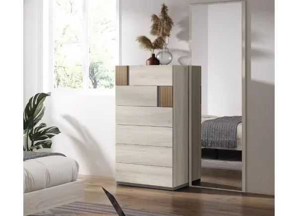 El dormitorio PENSACOLA 2, combina la elegancia y sofisticación minimalista con las tendencias del momento aportando grandes dosis de calidez al ambiente.