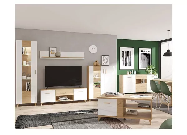 Armário de sala composto por: 1 vitrine alta + 1 vitrine baixa (bar ou adega) + 1 armário de TV e 1 prateleira de parede.